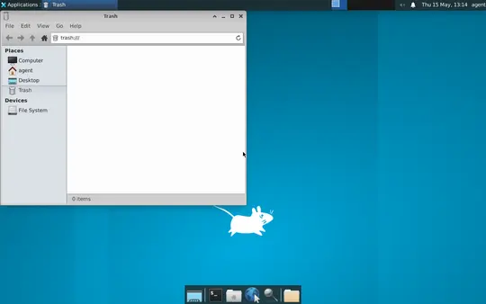 - 屏幕右上角显示日期和时间为“Thu 15 May, 13:14”,旁边有一个“agent”字样,可能是用户名或会话标识。