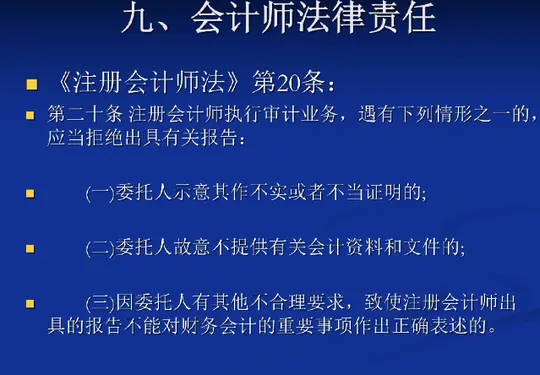 嗯,用户发了一张关于《注册会计师法》第20条的幻灯片,问这是在说什么事情,并要求模拟一个情景来理解,还要介绍主体。首先,我需要先理解幻灯片的内容。幻灯片标题是“九、会计师法律责任”,然后引用了《注册会计师法》第20条,列出了三种情形,注册会计师应当拒绝出具相关报告。