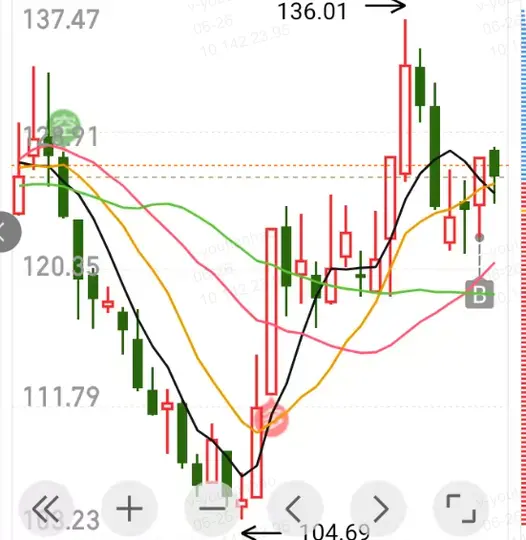 - 图中显示的最高价是 136.01,最低价是 104.69。
