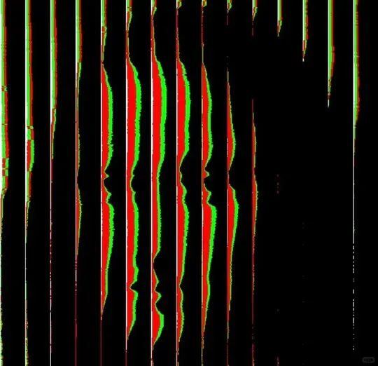 嗯,用户发来了一张看起来像数字故障或图像扭曲的图片,主要是红色、绿色和黑色的垂直条纹。首先,我需要分析这张图的可能来源和意义。用户问“这个图是什么”,可能想知道图片的主题或背后的含义。