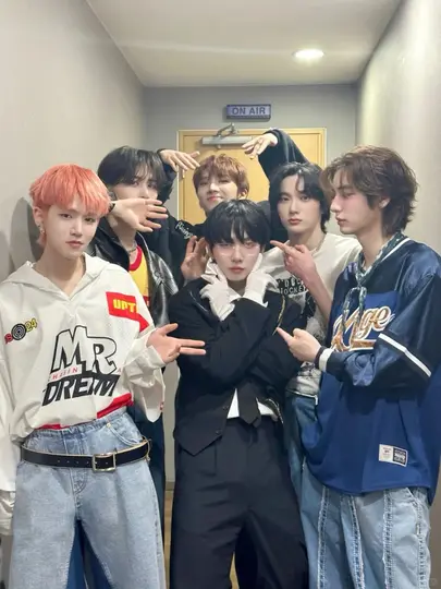 再看图片细节:背景有“ON AIR”标识,表明这可能是在广播或电视演播室。人物站位:从左到右,有六个人。