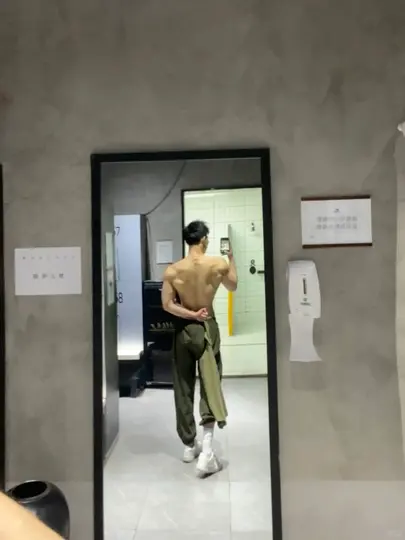 不过,需要注意不同部位的脂肪分布可能不同,比如有些人腹部脂肪较少,而其他部位可能有更多脂肪。但综合来看,他的整体肌肉量很高,各个部位的肌肉线条都比较明显,尤其是腹部和背部。因此,可能他的体脂率在8%-12%之间。考虑到健美运动员通常在比赛期间体脂率会降到6%-8%,但平时可能稍高一些。而这张照片看起来像是平时的自拍,可能体脂率在10%左右,处于较低水平,但尚未达到比赛级的极低体脂率。