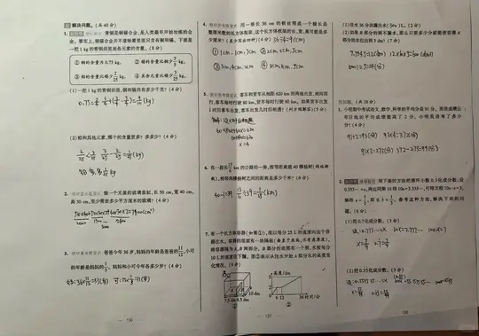 从截图的页数看,第一张图(133页)主要是前半部分,第二张图(136-138页)包括解决问题和附加题。但没有明确的总分标注。