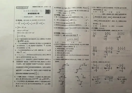 从图片中看,试卷的标题和格式像是小学五年级的数学测试卷。通常,这类试卷的结构是: