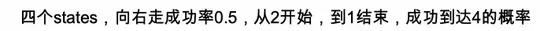 再读问题:“四个states,向右走成功概率0.5”,可能意味着每次尝试向右移动,成功(移动到右边状态)的概率是0.5,否则可能移动到左边或停留。