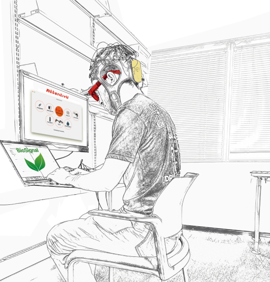 内容:参与者佩戴Enobio脑电头戴设备和AttentivU头戴设备进行实验