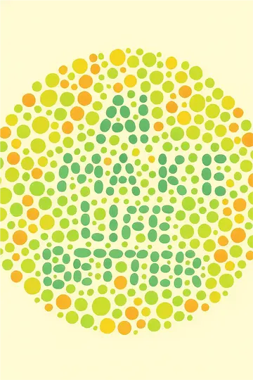 这张图是一个色盲测试图,通过不同颜色和大小的圆点组成文字。图中可以看到的文字是: