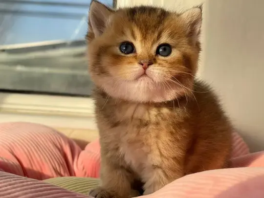 图片中的小猫:从外观来看,这是一只金渐层(Golden Shorthair)。金渐层是英国短毛猫(British Shorthair)的一个毛色变种,特点是毛色从浅金色到深金色渐变,眼睛大而圆,通常是蓝色或绿色,脸部圆润,体型健壮。图片中的小猫毛色是金渐层,眼睛是蓝色的,符合金渐层的特征。