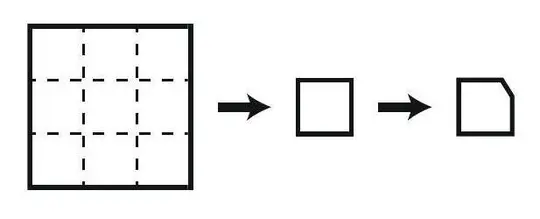 But to make it simple, let's assume that the small square we fold to is the bottom-left small square, for example, and we cut its bottom-left corner or something.