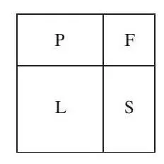 P top-left, F top-right, L bottom-left, S bottom-right.