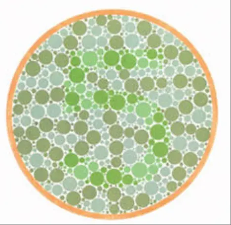 对于色盲测试图,正常视觉的人能看到数字,色盲者可能看不到。