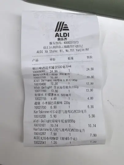 现在看购物小票(第二张图),它列出了购买的商品和价格: