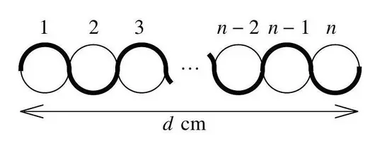 The length of the string is \dfrac{d \left( n + (n-1)\pi \right)}{2n} cm.