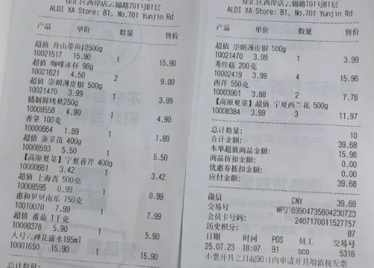 超市小票食材(从图片中提取,包括但不限于):