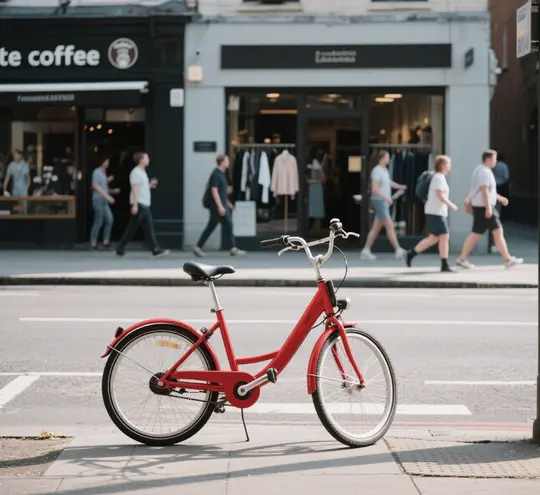 思考: 我仔细观察了两张图片,第一张图片中有一辆红色的共享单车停在人行道上,而第二张图片中这辆单车已经被移除。编辑后的图像中,单车的位置被平滑地填补,没有明显的痕迹或伪影。背景中的行人和店铺没有受到影响,仍然保持了原有的清晰度和细节。