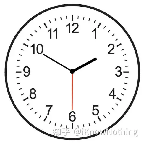 等一下,数字10的位置:分针的针指向数字10的方向,但钟表的指针是连续的。