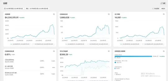 - 转化侧:在线商店转化率(访问→下单的效率)、总订单数(转化规模)