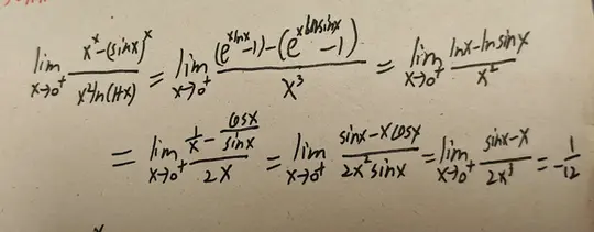limx→0+x2ln(1+x)xx−(sinx)x