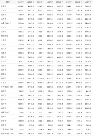 但让我确认全国总和是否包括所有地区。表格中列出了所有省份,用户给的总和应该是对的。