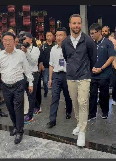 Given the context of previous conversations about finance, health, and gaming, this seems like a sudden shift to sports/culture. The photo appears to be from Curry's China trip in 2024 - I recall he visited multiple Chinese cities that summer for brand events and fan meetings.