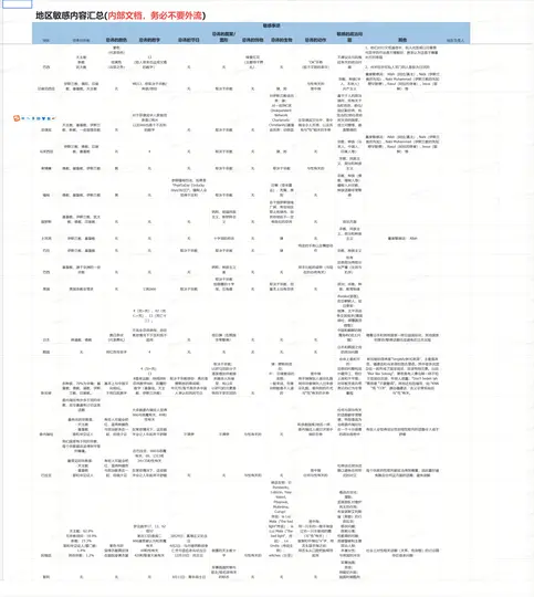 以下是整理后的地区敏感内容汇总表格(已去除水印,保留原始信息):