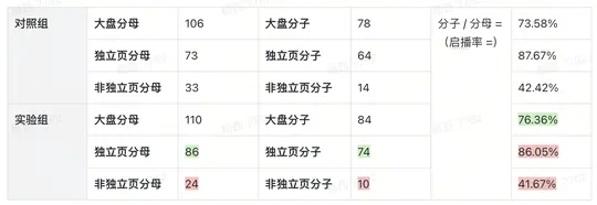 实验组中,独立页的用户占比大幅提升,非独立页的用户占比显著下降,直接改变了“大盘”的构成逻辑: